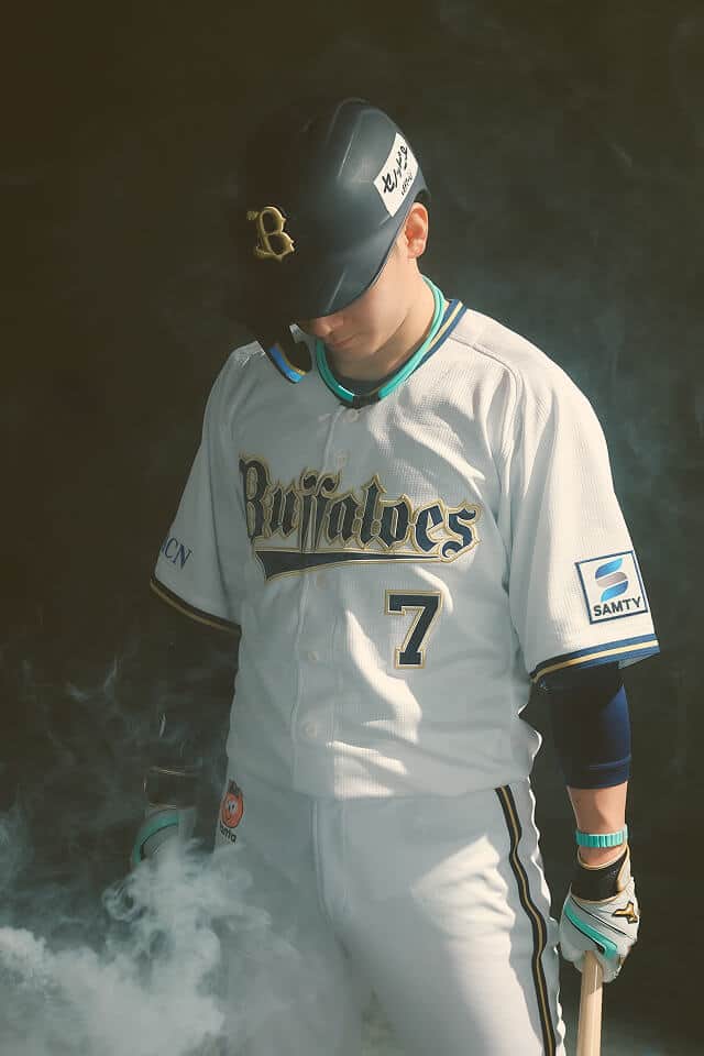 西川龍馬選手が好むターコイズブルーをデザインのアクセントとして採用し、