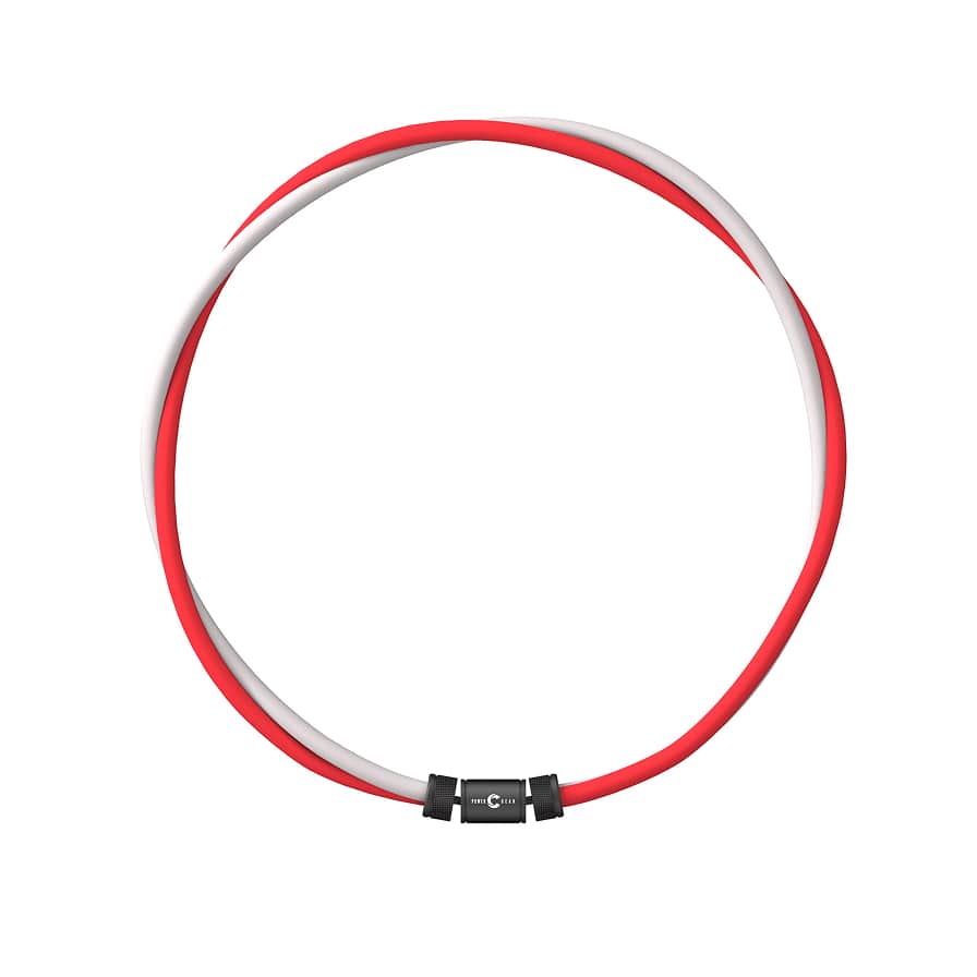 一般的なフェライト磁石の約10倍の磁力を持つ強力なネオジウム磁石を1ループ1本の首元部分に 160mT 磁石 12 個配置。 さらに二重により合計 24 個のハイパワー。
