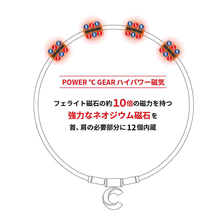 その最大の特徴は、装着時に「コリの集中するポイント」を狙い撃ちできるよう、ネオジウム磁石を3個連続を1ユニットで配置していること。3個(1ユニット)×4箇所の合計12個のネオジウム磁石を使用。これにより、ピンポイントで集中的に、しかも力強く磁気の効果を実感できます。