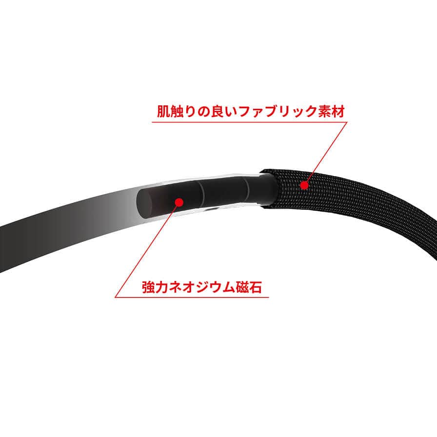 表面素材に肌触りの良いファブリック(繊維素材)を使用する事で、一般的なシリコンネックレス商品に比べて、着け心地をより快適に。POWER℃GEARはファッション性と機能性を兼ね備えた素材を採用。