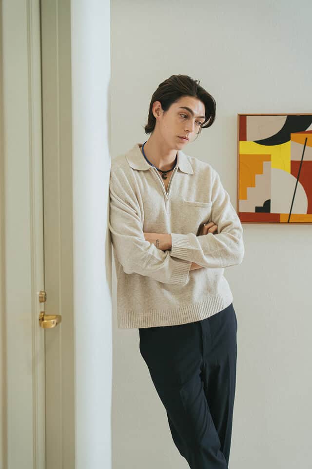 ソリッドでエッヂの効いたディテールで、シンプルながら首元の印象に華を添えます。