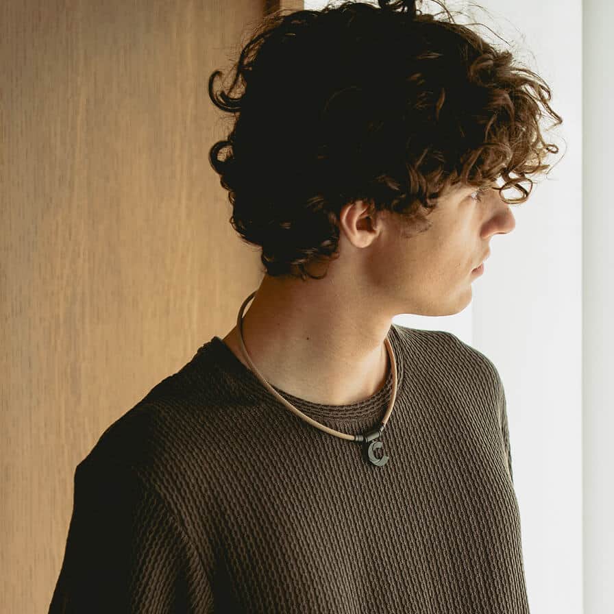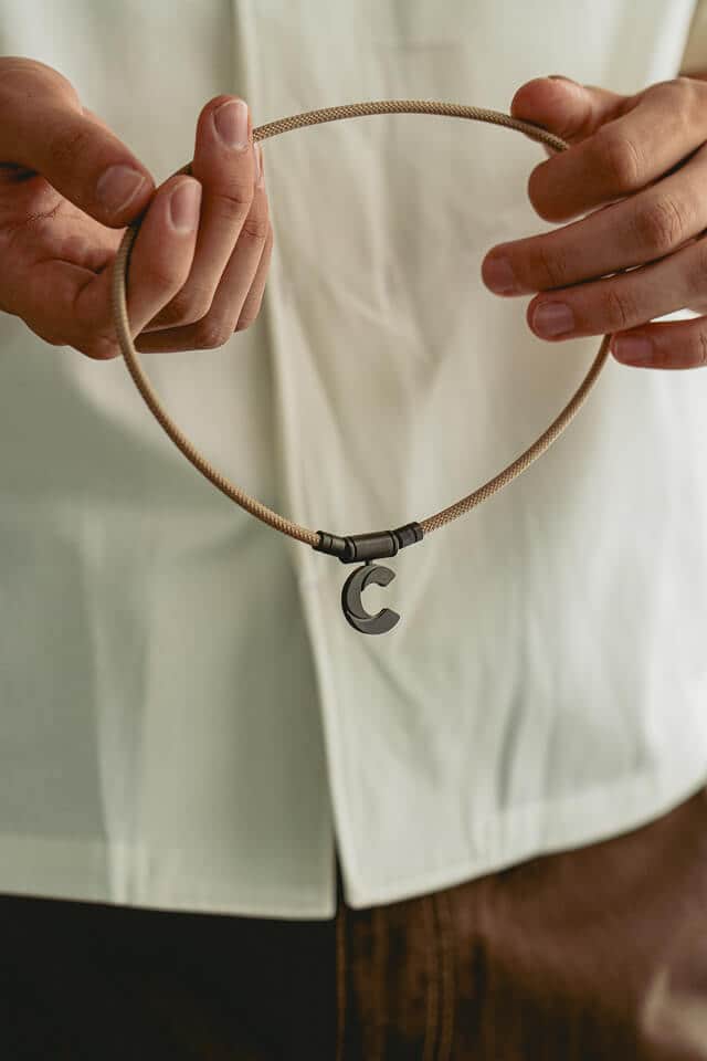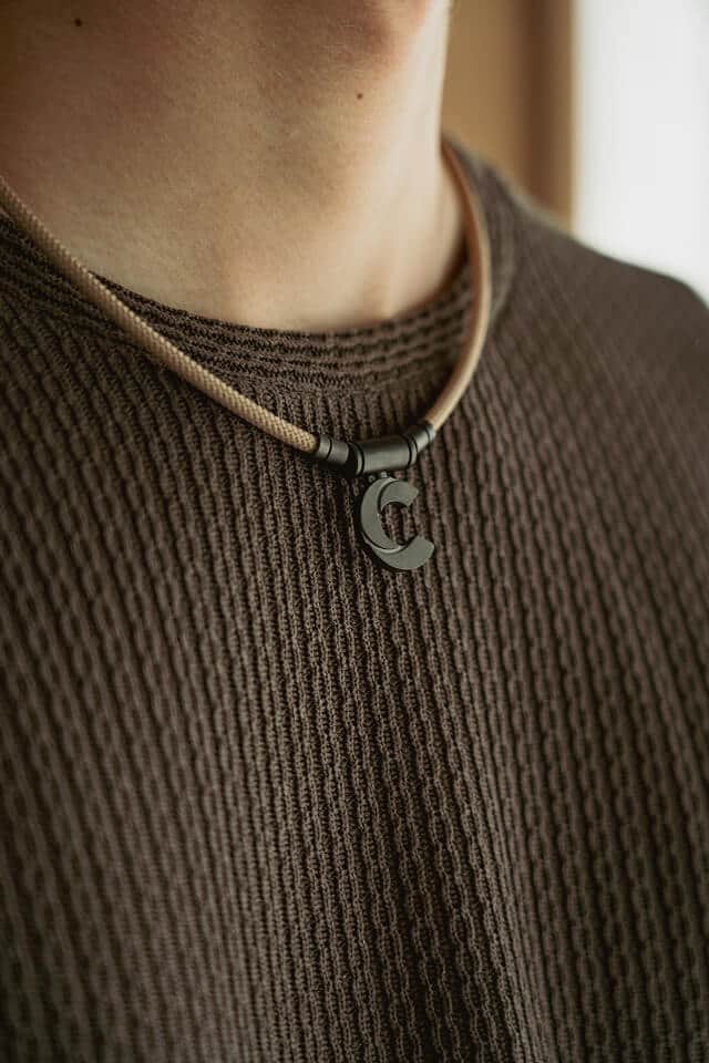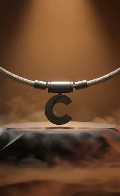 トップパーツに軽量かつ強靭なチタンを採用し、ブランド史上最も軽いネックレスを実現しました。