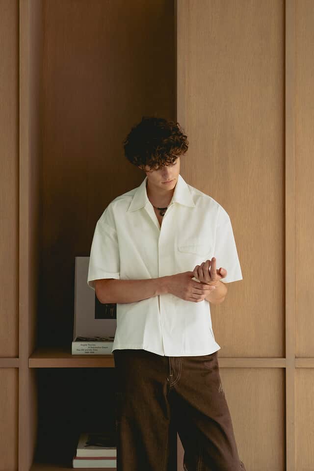 ソリッドでエッヂの効いたディテールで、シンプルながら首元の印象に華を添えます。