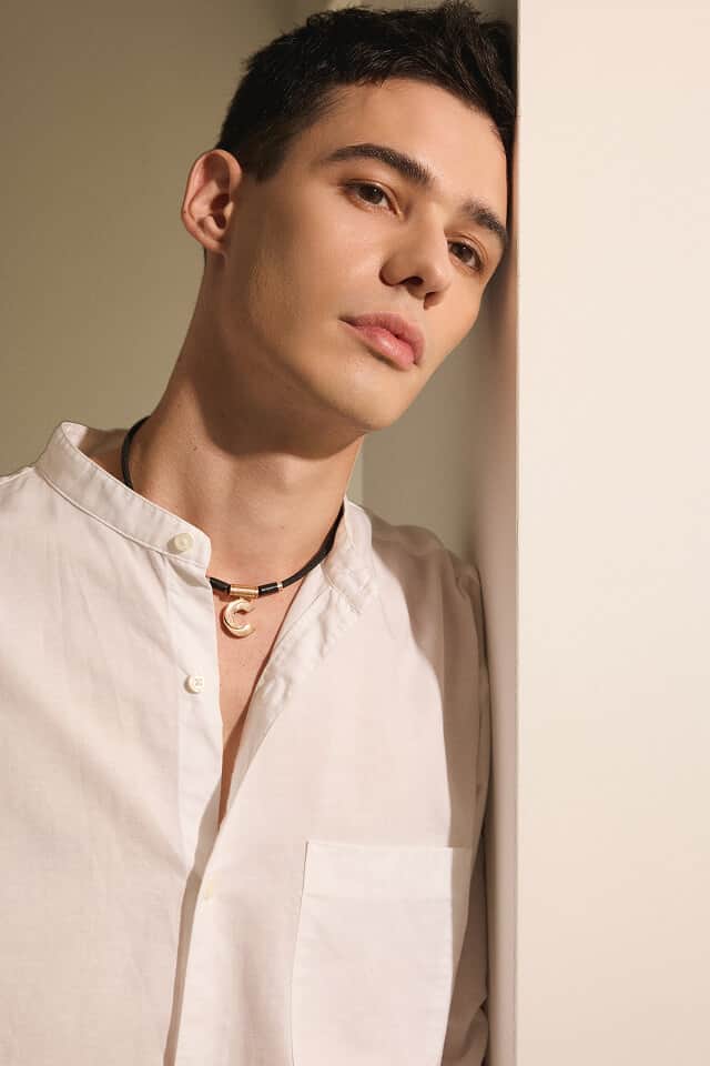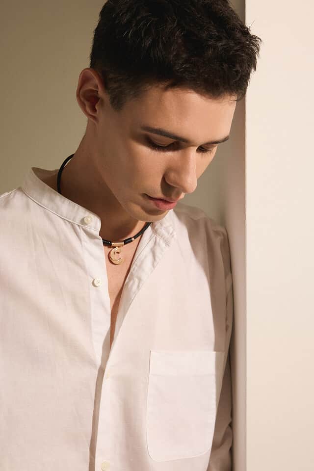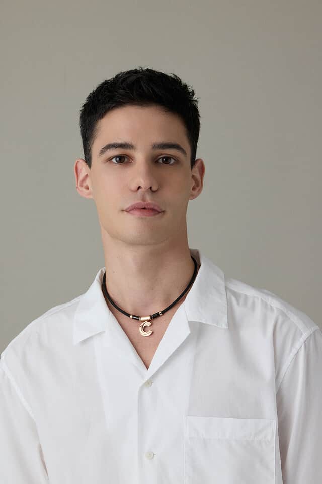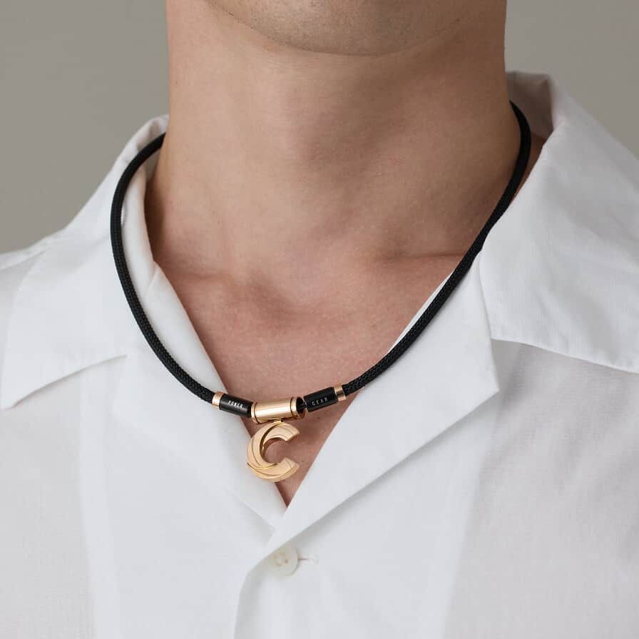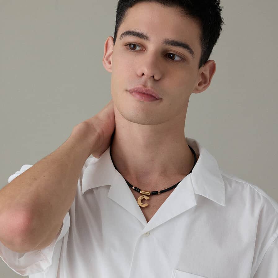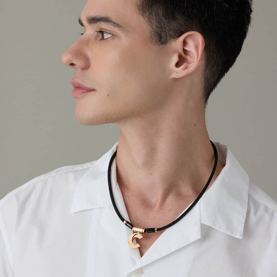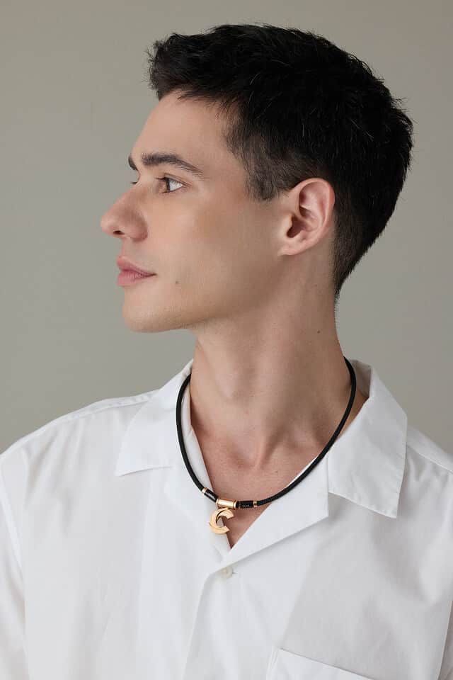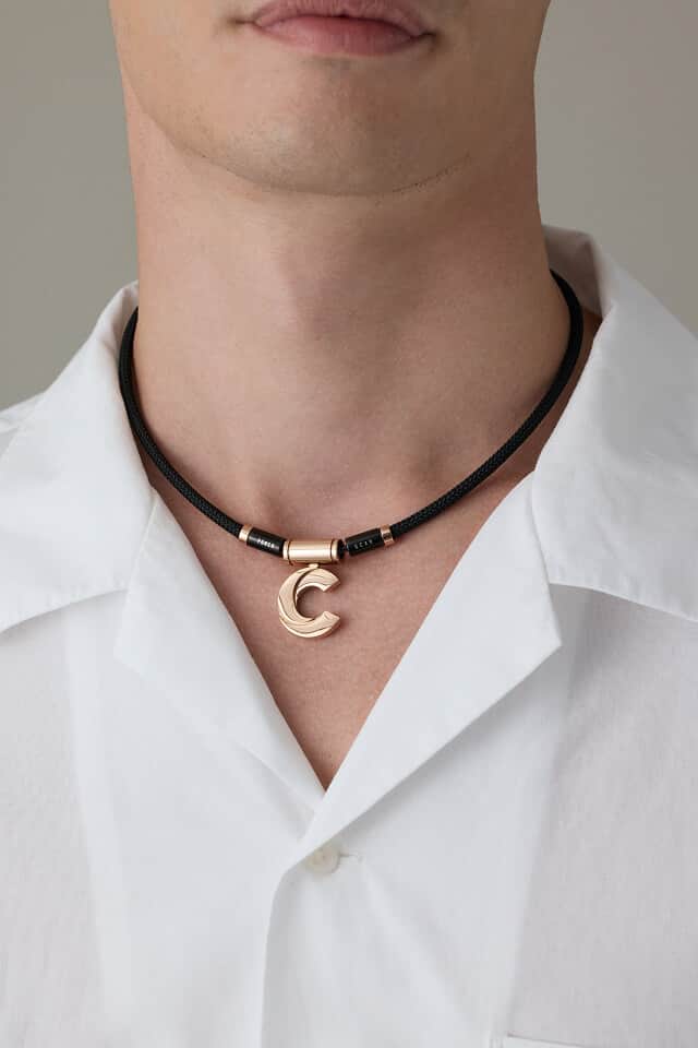 ソリッドでエッヂの効いたディテールで、シンプルながら首元の印象に華を添えます。